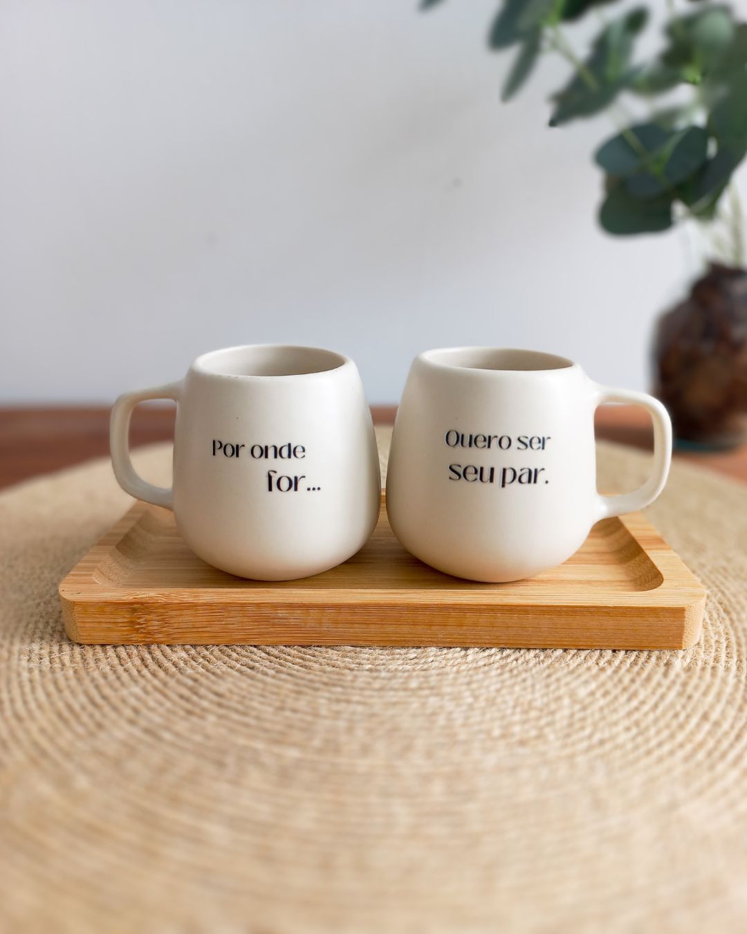 1. Dupla de canecas 150 ml com mensagem "Onde você for... Quero ser seu par";