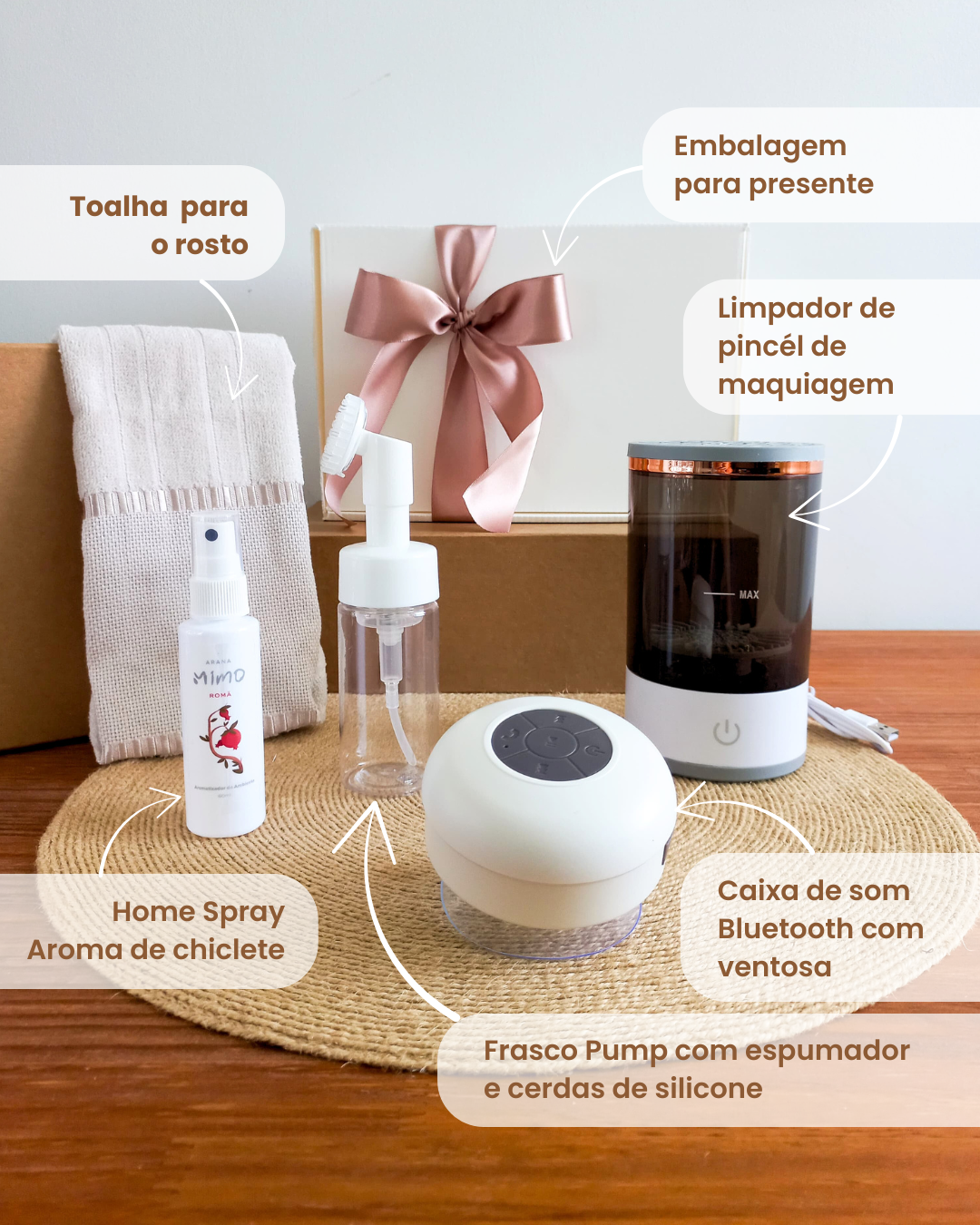 Todos os produtos são entregues em uma caixa de presente com um cartão que terá sua mensagem personalizada.