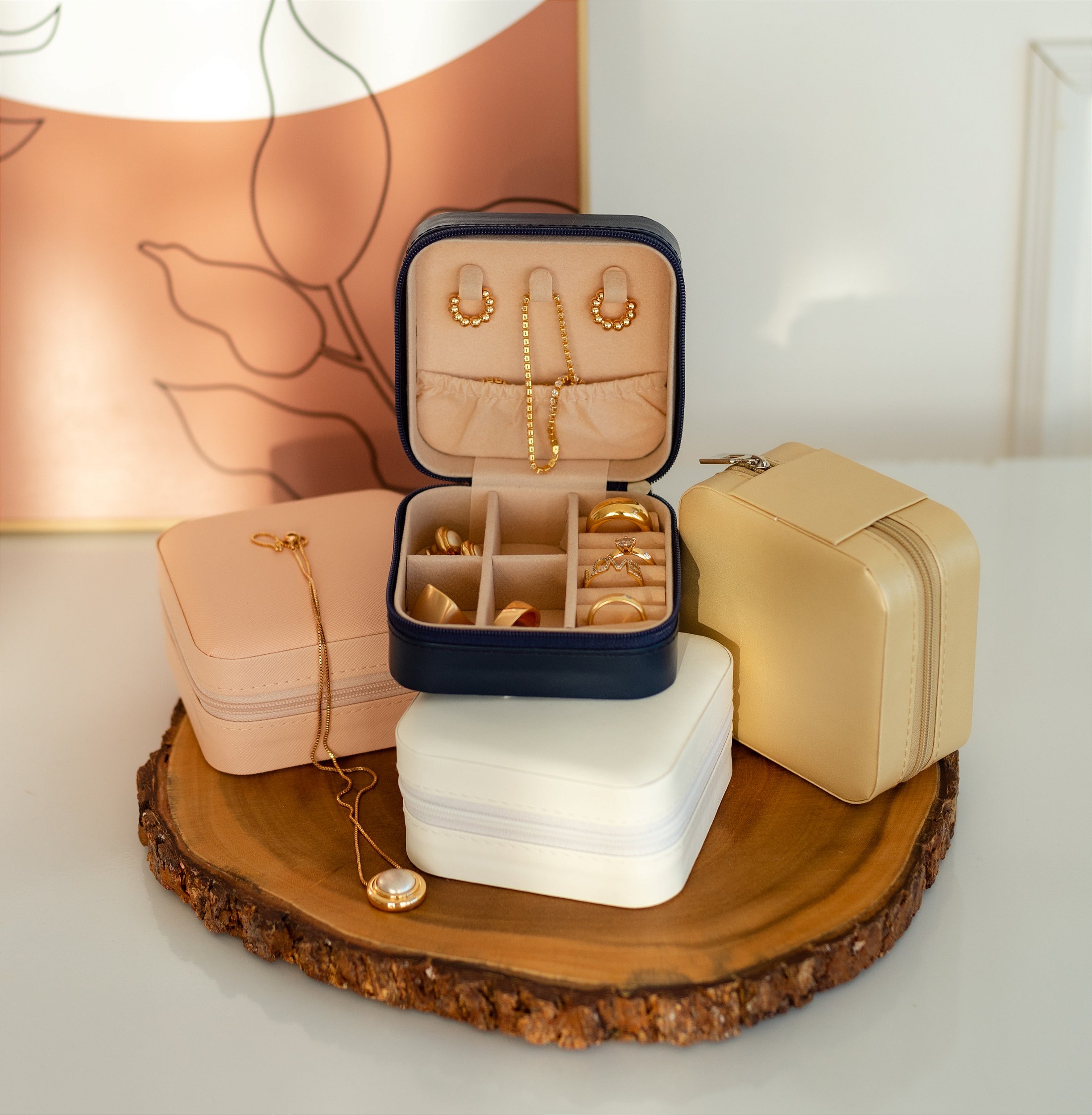 Nossos Porta joias, são ótimos para levar em viagens, mantendo as joias ou bijuterias seguras e organizadas .